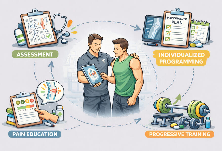 Injury management and rehabilitation are integrated into coaching where required.Rather than avoiding movement altogether, I focus on intelligent training around injury, supporting clients through pain, limitations, and return-to-training phases in a structured and progressive way.A key part of this process is helping clients develop a healthier relationship with pain and movement, reducing fear, building confidence, and maintaining physical capacity throughout rehabilitation and beyond.